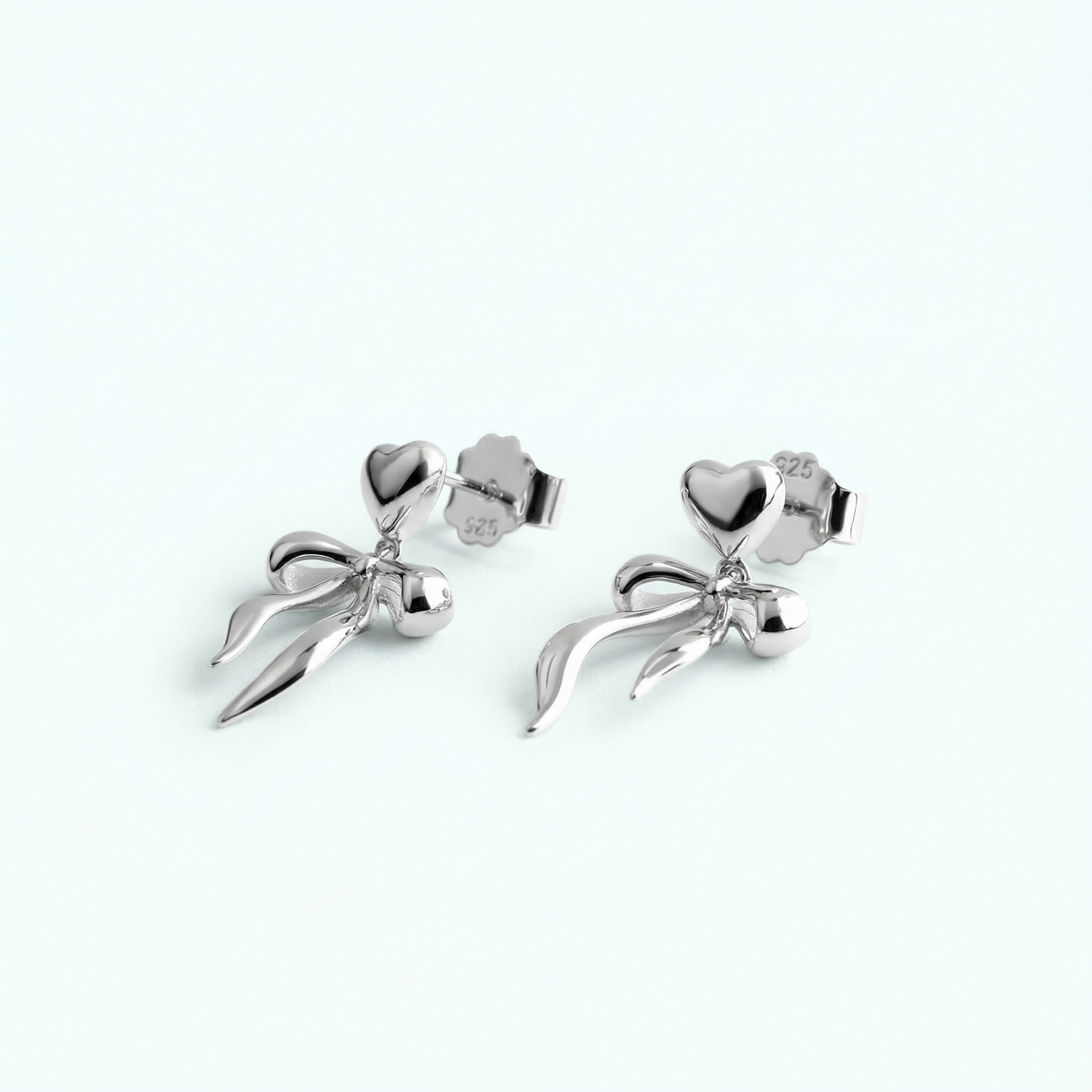 • Design: Heart stud with bow dangle charm